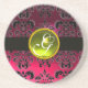 Dessous De Verre En Grès NOIR ET ROSE DAMASK Jaune Topaz Monogramme