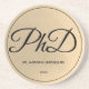 Un dessous de verre doctorant avec une tonalité or (non-feuille) et des couleurs noires. Il montre le diplôme, le nom et l'année. Customisez simplement ce coster, ajoutez-le à votre panier et gardez en pratique cette réalisation majeure.
