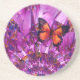 Une fleur unique hypnotique avec un papillon orange qui vole autour.
