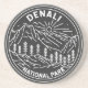 Design de monoline Denali. Le parc a un terrain de toundra, de forêt d'épinettes et de glaciers, le parc abrite la faune, y compris le grizzli, le loup, l'orignal, le caribou et le mouton de Dall.