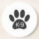 Un mignon empreinte de patte de chien de style dessin animé et texte avec l'effet grunge et angoissé appliqué à l'image. Dessous de verre personnalisés avec thème K9. Idée cadeau.