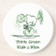 Un croquis mignon de crayon en vert d'un cavalier de bicyclette sautant un wheelie. Le texte personalizable lit "pensent le vert - montez un vélo." Un cadeau d'amusement pour votre cavalier préféré de bicyclette ou ambiant ami conscient - ou peut-être pour vous-même. L'amusement d'aller à vélo avec un lifestye sain et sauvent le thème du monde.