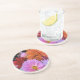 Éclairez le jour avec ces dessous de verre glorieux comportant une collection de fleurs de dahlia de nénuphar dans une conception colorée de rose, d'orange et de rouge.