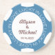 Commémorez votre mariage ou anniversaire avec ce dessous de verre en grès facile à customiser. Votre nom et année est mis sur le dessus d'une puce de poker. Le texte "chanceux amoureux" est placé de façon circulaire.