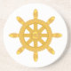 Dessous De Verre En Grès Roue de bateau doré sur blanc