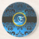 Dessous De Verre En Grès Sapphire NOIR ET BLEU DAMASK Monogramme