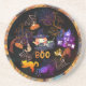 Amusez-vous avec ces mignons Dessous de verre d'anniversaire de sorcière d'Halloween sur un arrière - plan noir foncé avec beaucoup de personnages mignons : une petite sorcière, des arbres, des toiles d'araignée, de mignons citrouilles, des chats, et plus encore. Une décoration soignée pour apporter un peu de charme Halloween à votre table.