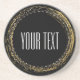 Sous-verres en cercle de glamour pailleté et feuille d'or. Personnalisez avec n'importe quel texte.