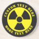 Dessous de verre en grès noir et jaune nucléaire radioactif. Conception de l'icône d'avertissement de radiation ronde avec du texte personnalisé. Ajoutez votre propre nom personnalisé ou une citation amusante. Cool Vacances ou Anniversaire idée cadeau pour préparer des amis, famille, précepteur, père, mari, scientifique, patron, collègue, collègue etc. Boire amusant des grillades pour la maison, bar, café, pub, grotte homme etc.