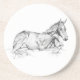 Un BIRO noir et blanc (stylo à bille) illustration/dessin d'un jeune cheval posé sur le sol se réveillant de sa sieste. Par l'artiste BIRO Robin Hewitt.