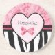 Dessous De Verre En Grès Tendance rose et noir Zèbre motif Bow et nom