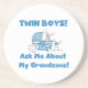 Fiers de nouveaux grands-mères jumeaux vont adorer ce joli design bleu avec deux lapins dans un bassinet bleu et le texte bleu qui dit "Demandez-moi à propos de mes petits-fils !"