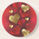 Composition verticale de rouge et d'or, valentines texturées en feuille et brocade sur arrière - plan rouge. Les décorations de la Saint Valentin.