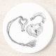 Stylo et dessin à l'encre d'une serrure en forme de coeur et clé sur un dessous de verre en grès. Oeuvre : Stylo et encre sur papier. Copyright : Dominic A. White. Tous droits réservés.