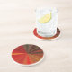 Ces dessous de verre de grès comportent une conception abstraite géométrique décorative. Les couleurs brillantes de rouge, d'orange, l'or, le brun, jaunes et verdissent toutes convergent dans un motif de vortex avec répéter des triangles de diverses textures tissées.