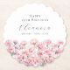 Perfect table decor for a January birthday party. Carnation is the birth flower for that month. It forms a pretty watercolor floral bottom border on this pretty personalized paper coaster. The birthday celebrant's name, age and birthdate are placed above it using elegant calligraphy and typography. All text is editable.