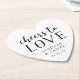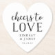 Rendez votre heure de cocktail de mariage encore plus mémorable avec ces dessous de verre en papier en forme de cœur doux et romantique, avec la mention "à l'amour" et vos noms et date de mariage en dessous. Le design de typographie chic noir et blanc apporte une touche élégante mais légère à votre réception de mariage.