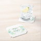 Dessous de verre en papier vernis à l'aquarelle de printemps élégant. Il affiche le nom de la mariée et du marié avec la date du mariage.