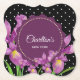 D'après mon illustration aquarelle de l'iris pourpre avec ses pétales multicolores, violet sur la partie extérieure et jaune au centre, avec de fines précisions sur les pétales et le feuillage. Le produit a un motif pois noir et blanc chic sur l'arrière - plan. Customisez-le dans mon magasin pour un design personnalisé.