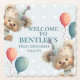 Birthday Party Supplies featuring two illustrated Hedgehogs in party hats, festive balloons, and a birthday cake with glowing candles. Set against a soft blue background with a delicate heart pattern, the design radiates warmth and celebration.