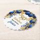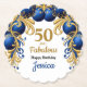 Bright and colorful blue and gold balloon arch any age birthday paper coaster, change the text yourself when you order
