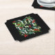 Le mot CHRISTMAS se trouve parmi les feuilles et les baies sur un arrière - plan noir (ou toute couleur) sur ces dessous de verre en papier carré style billet, élégant pour toute occasion de Noël de vacances ou donner comme cadeau d'hôtesse. CORRESPONDRE des articles dans notre magasin.