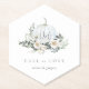 Tombez amoureux de ce design botanique éthéré pour les douches de mariée d'automne, les dîners de répétition, les mariages ou les fêtes de fiançailles. Le design élégant présente une citrouille à l'aquarelle blanche inscrite avec les initiales du couple et flanquée de fleurs blanches, de feuillage vert et de feuilles d'eucalyptus. "Tombez amoureux" apparaît en dessous, ainsi que votre texte personnalisé.