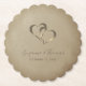 Améliorez votre célébration avec notre design simple et élégant de deux coeurs reliés au-dessus du texte personnalisé sur un dessous de verre en papier doré brun. Ce dessous de verre est l'accessoire parfait pour un dîner de répétition, une douche nuptiale ou une réception de mariage. Appréciez la sophistication de votre événement avec une touche personnalisée qui complète la chaleur et la joie de l'occasion. Bravo pour l'amour et les célébrations mémorables !