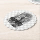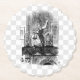 Ensemble de 6 dessous de verre jetables crantés ronds de panneau de pulpe avec un cru par l'image de psyché d'Alice se mettant à genoux sur le mantel de cheminée, scrutant dans le miroir sur un damier gris et blanc. Serviette assortie de cocktail de dessous de verre et de papier de grès See. Voyez la collection entière de dessous de verre du pays des merveilles dans la section de dessous de verre de FOOD/BEV |.