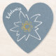 Dessous de verre en papier de carton élégant, réalisés dans un look bleu carton, avec des graphiques du contour d'une fleur Edelweiss blanche, au milieu. Texte blanc : Edelweiss. Idéal pour les fêtes, utilisation quotidienne et idées cadeaux.