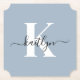 Ces dessous de verre en papier bleu poussiéreux, simples et élégants, avec votre prénom dans une police de script tendance en noir et votre première initiale dans une police casquette moderne en blanc sont parfaits pour garder vos tables et compteurs libres des anneaux d'eau. Ils absorbent les gouttelettes pour que vous n'ayez pas à vous inquiéter lorsque vous divertissez ou prenez un verre. Elles sont design, tendance et pourtant très classiques.