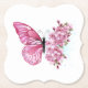 Flower arrangement of pink butterfly with rose Japanese cherry blossoms on white background.