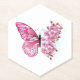 Flower arrangement of pink butterfly with rose Japanese cherry blossoms on white background.