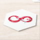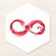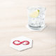 Infinity symbole of continuous stream of red pouring into glass glass glass on white background.