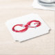 Infinity symbole of continuous stream of red pouring into glass glass glass on white background.