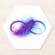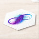 Infinity symbole with a beautiful feather painted in purple and blue bright colors on white background