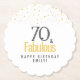 Moderne 70 et fabuleux Dessous de verre de papier d'anniversaire. 70 et texte fabuleux en typographie tendance sur arrière - plan blanc. Personnalisez-le avec votre nom et votre âge, et faites une décoration élégante de fête d'anniversaire pour une fête d'anniversaire de femme.