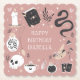 Vous planifiez une fête d'anniversaire sur le thème de l'Halloween, de la gitane ou d'une discothèque ? Accessoire avec ces dessous de verre en papier éffrayant chic personnalisé dans une palette de couleurs inspirée de la nature boho. Le design présente des illustrations d'un serpent, d'un livre d'épices, d'une bougie, d'un pot, d'un crâne, de cartes tarot et d'une potion entourant votre texte personnalisé.