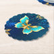 Dessous-de-verre En Papier Papillons d'or sur un Arrière - plan bleu