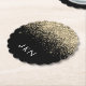 Parties scintillant à étincelles d'or et de noir Dessous de verre de papier de nom Monogramme. Cela fait le cadeau parfait de remise de diplômes, anniversaire, mariage, douche nuptiale, anniversaire, baby shower ou bachelorette pour quelqu'un qui aime le luxe glam et les styles chic.