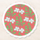Bright, cheerful, and perfect for any celebration, this floral paper coaster features hand-drawn white blossoms and lively green leaves arranged over a bold red background. A coordinating green rim adds a fun, modern touch that makes the design pop.