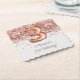 Rose or 3ème anniversaire papier de fête dessous de verre carré pour décorer les tables de fête d'anniversaire papier imprimé blanc texturé.
