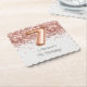 Rose or 7e anniversaire dessous de verre papier de fête carré pour décorer les tables de fête d'anniversaire papier texturé blanc design imprimé.