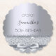 Moderne, élégant et séduisant pour une fête d'anniversaire de 50e femme (ou de n'importe quel âge). Un arrière - plan faux argenté avec un élégant faux arc argenté, ruban. Le nom est écrit avec un script de style moderne en lettres de main noire. Modèle pour une date (date de naissance ou date de la fête) et 50 ans.