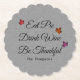 Ce dessous de verre amusant est facile à customiser avec votre nom de famille, et est plus accentué avec les feuilles d'érable et le dicton mignon, Mange Pie Drink Wine Be Thankful sur un arrière - plan de lin gris, ce qui le rend parfait pour des vacances divertissantes.