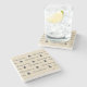 Ancien Pays Noël Arbres de Pierre Dessous de verre en pierre en beige. En noir avec ombrage blanc : arbres de Noël dans des pots avec des bougies à l'ancienne, et les mots "C'est un Noël de pays" dans deux types de typographie.