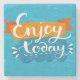 Appréciez aujourd'hui - la citation positive, la calligraphie manuscrite sur l'arrière - plan grunge bleu et le ruban d'orange. Dirigez la conception de typographie pour les cartes, le T-shirt, les affiches et le contenu social de médias. | Bigstock® - tous droits réservés.