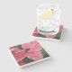 Dessous-de-verre En Pierre Argent Star Marbre Poinsettias Pink Holiday Floral