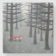 Un renard rouge sauvage se dresse au milieu des pins dans une forêt sombre. Une peinture paysagère pour la faune, la nature et les amoureux des animaux.