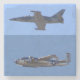 Un dessous de verre de boisson avec une photo d'avions de guerre dont un B-25 appelé Super Rabbit. L'autre est un avion d'entraînement L-39 fabriqué en Europe de l'Est.